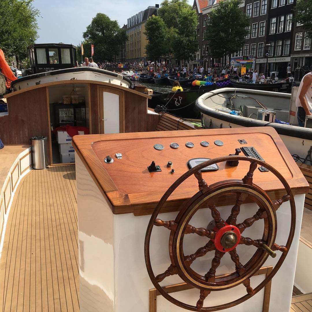 Sloep XXIV is onze laatste aanwinst binnen de vloot. Tevens de grootste sloep van Amsterdam! Gekeurd voor een capaciteit van 80 personen, maar vanzelfsprekend is het ook mogelijk om heerlijk te varen met een groep van 30 personen. De vaartocht neemt u mee langs de mooiste plekjes van Amsterdam, zoals het Anne Frank huis, Amstel hotel, Rijksmuseum, Magere brug. Terwijl u de grachten aan u voorbij ziet gaan kunt u tevens van lekkere hapjes genieten. Zo bieden we een complete catering aan boord zodat u en uw gasten altijd wat te versnaperen hebben. Van een heerlijke Italiaanse catering met lekkere caprese salades tot aan de Indonesische saté keuken of wat dacht u van sushi aan boord? Het behoort allemaal tot de mogelijkheden op deze riante sloep met toilet aan boord!